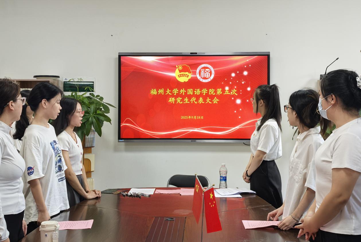 随着庄严肃穆的国歌声响起,外国语学院第五次研究生代表大会正式开始。