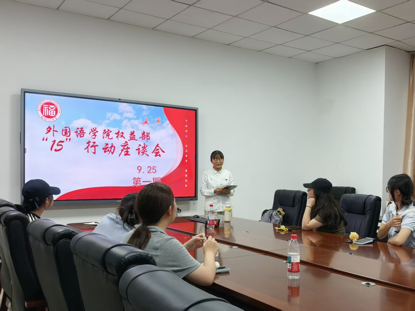 为持续搭建学生与学院之间的高效沟通桥梁,切实解决同学们在学习生活中遇到的各类问题,外国语学院权益部于2025年9月25日19时在院办208教室,成功举办了新学年的首次“15行动”权益座谈会暨权益委员培训会。本次活动将开放式座谈与针对性培训相结合,旨在更全面地倾听学生心声,提升权益工作的效能。