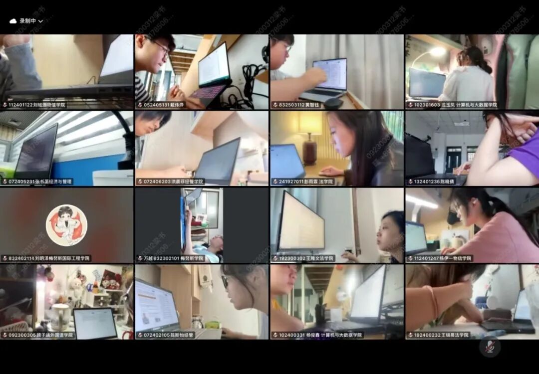 线上赛场则以旗山校区为主阵地,通过专用赛事平台与线下同步开考。监考与巡考工作由蔡云琴老师、研究生团队以及学习部共同承担,葛茜老师统筹协调整体组织,外研社提供平台支持。多方协作确保了赛事顺利有序地举行。