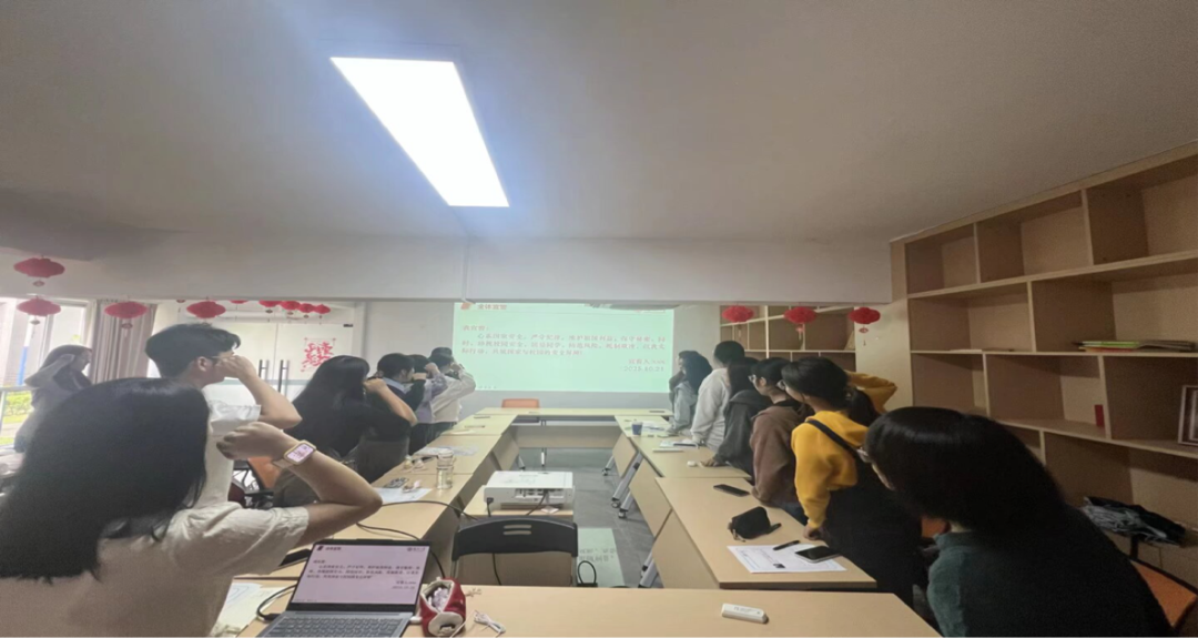 当“国家"的坚实守护、“校园安全"的温暖屏障与“心理安全"的澄澈晴空,在“青春大学"这片充满无限可能的星海上交汇,便奏响了一曲关于成长、守护与绽放的磅乐章。25 级德语5班团支部于10月21日组织开展了从“心”出发,以行固安,矢志爱国“1+N”团课主题班会。每一个年轻的灵魂波动与国家、社会共振,相互奔赴。