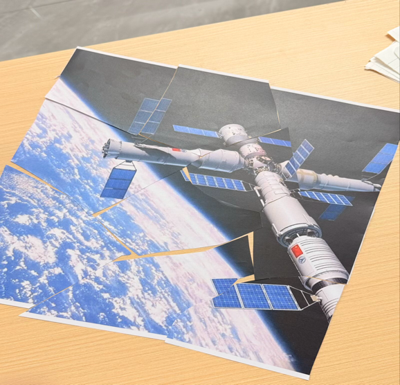 同学们团结协作,心往一处想,劲往一处使,共同接力完成国家地图的拼接任务,以及手中拼图的细致拼凑。