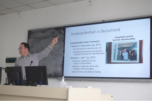 外教Guiseppe Sergio Presta系统介绍了福大学子赴德深造的可选项,涵盖暑期学校项目、校际合作等,为同学们清晰勾勒出赴德留学的路径框架。