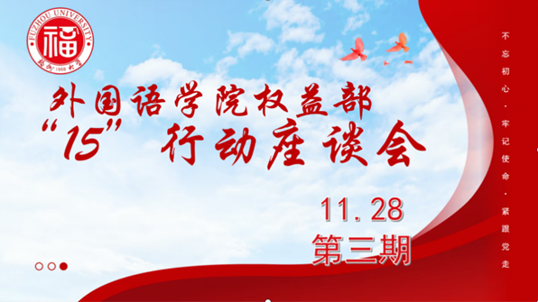 2025年11月28日,外国语学院权益部以线上会议的形式召开了第三期“15”行动座谈会。此次会议权益部秉承“倾听学生声音,解决学生问题”之宗旨,旨在打破学生与学校、物业的交流壁垒。