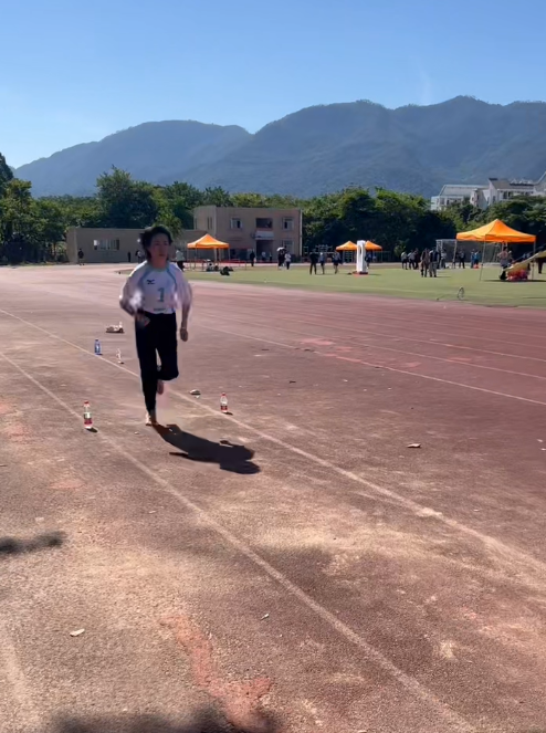沙坑旁暖阳正好,孙赞老师站定跳远的起跳线前。助跑时步伐轻快且富有节奏,起跳瞬间身体舒展如蝶,落沙时扬起的细沙仿佛在为她的每一次挑战欢呼,那奋力一跃的姿态,是她在跳远赛场书写的活力篇章。