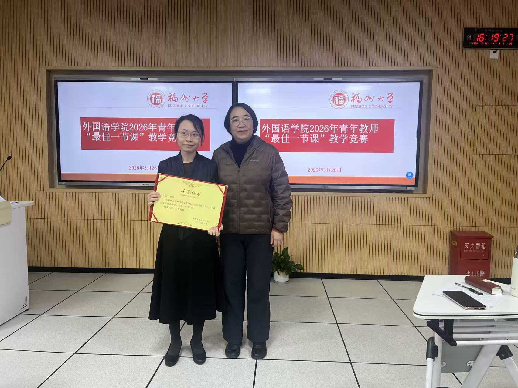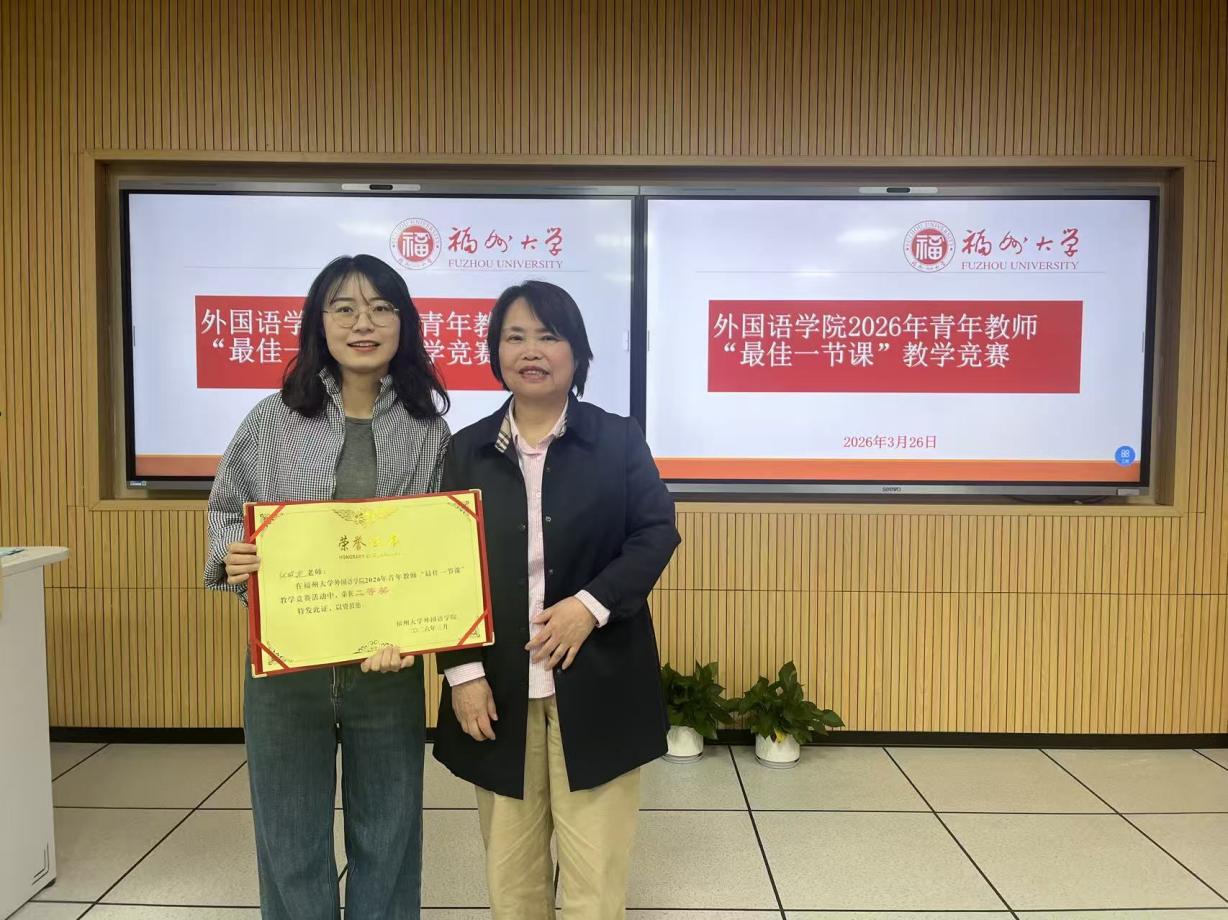 为锤炼青年教师教学本领,3月26日下午,外国语学院工会主办的青年教师“最佳一节课”教学竞赛在学院408教室顺利举行。福州大学教学督导组副组长王平,学院副院长林继红、院长助理兼公共外语教学部主任郑剑委、工会副主席徐冬梅以及3位参赛青年教师、学院部分教师参加活动。