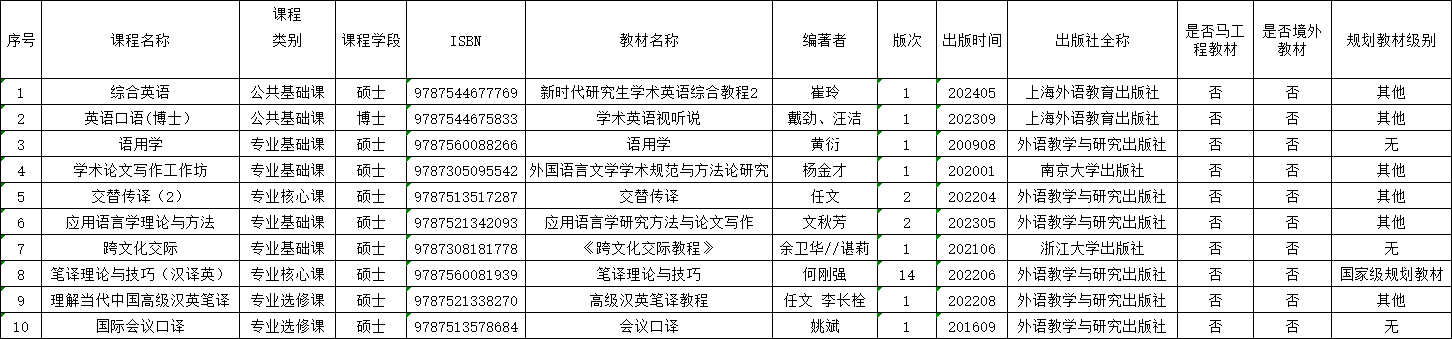 外国语学院2025-2026学年第二学期研究生课程教材选用表